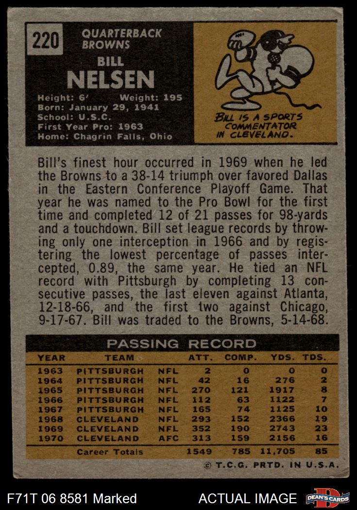 1971 Topps #220 Bill Nelsen 1 - POOR