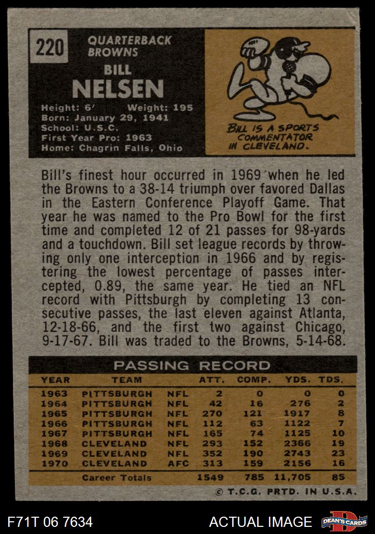 1971 Topps #220 Bill Nelsen Front Thumbnail