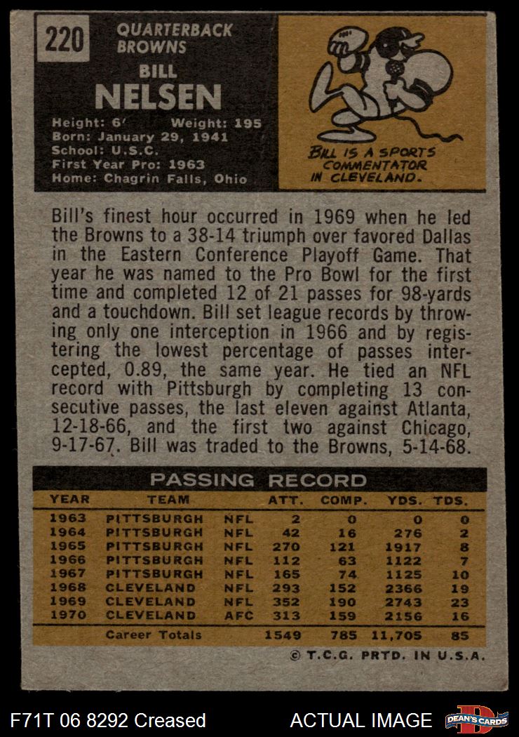 1971 Topps #220 Bill Nelsen 3 - VG