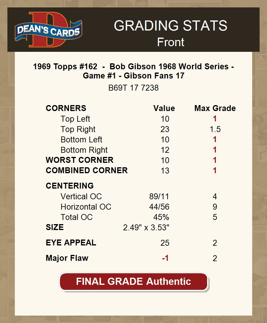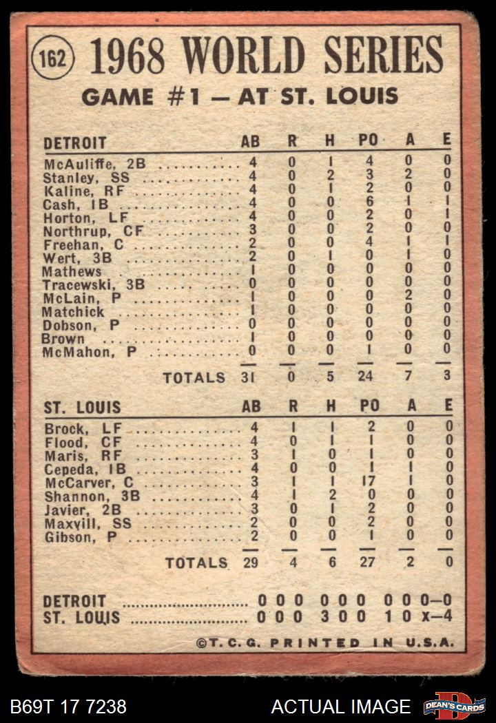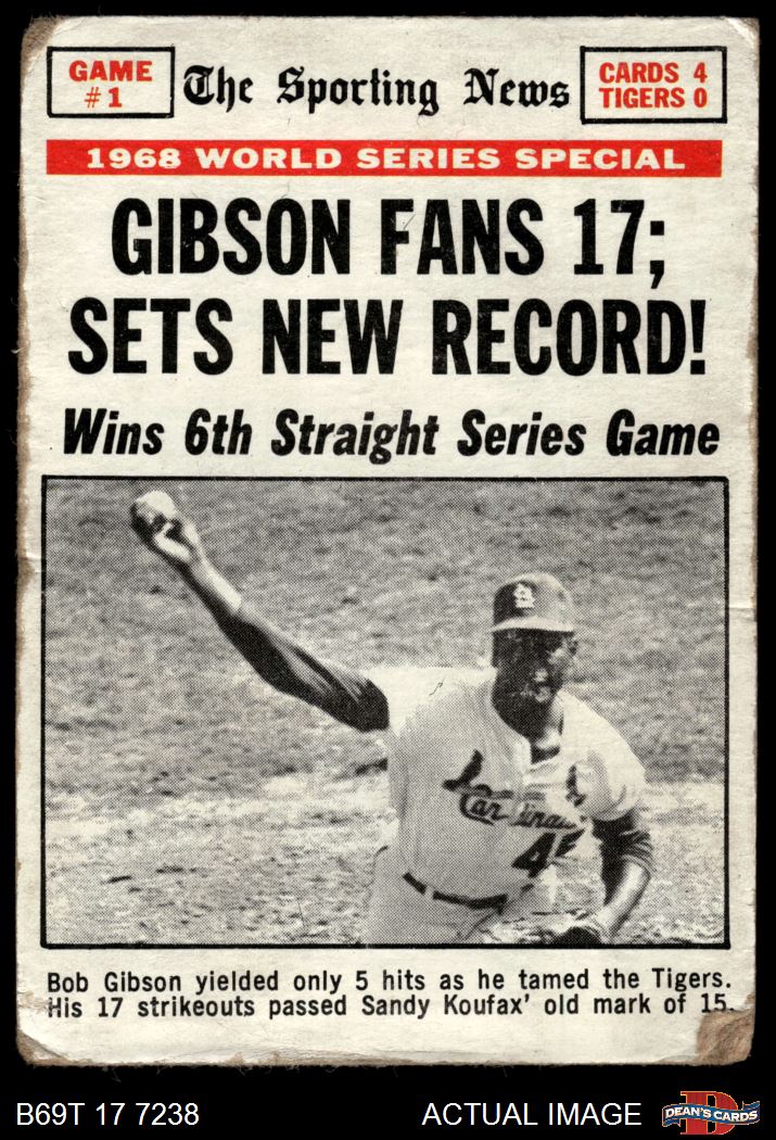 1969 Topps #162 - Bob Gibson 1968 World Series - Game #1 - Gibson Fans 17 AUTHENTIC