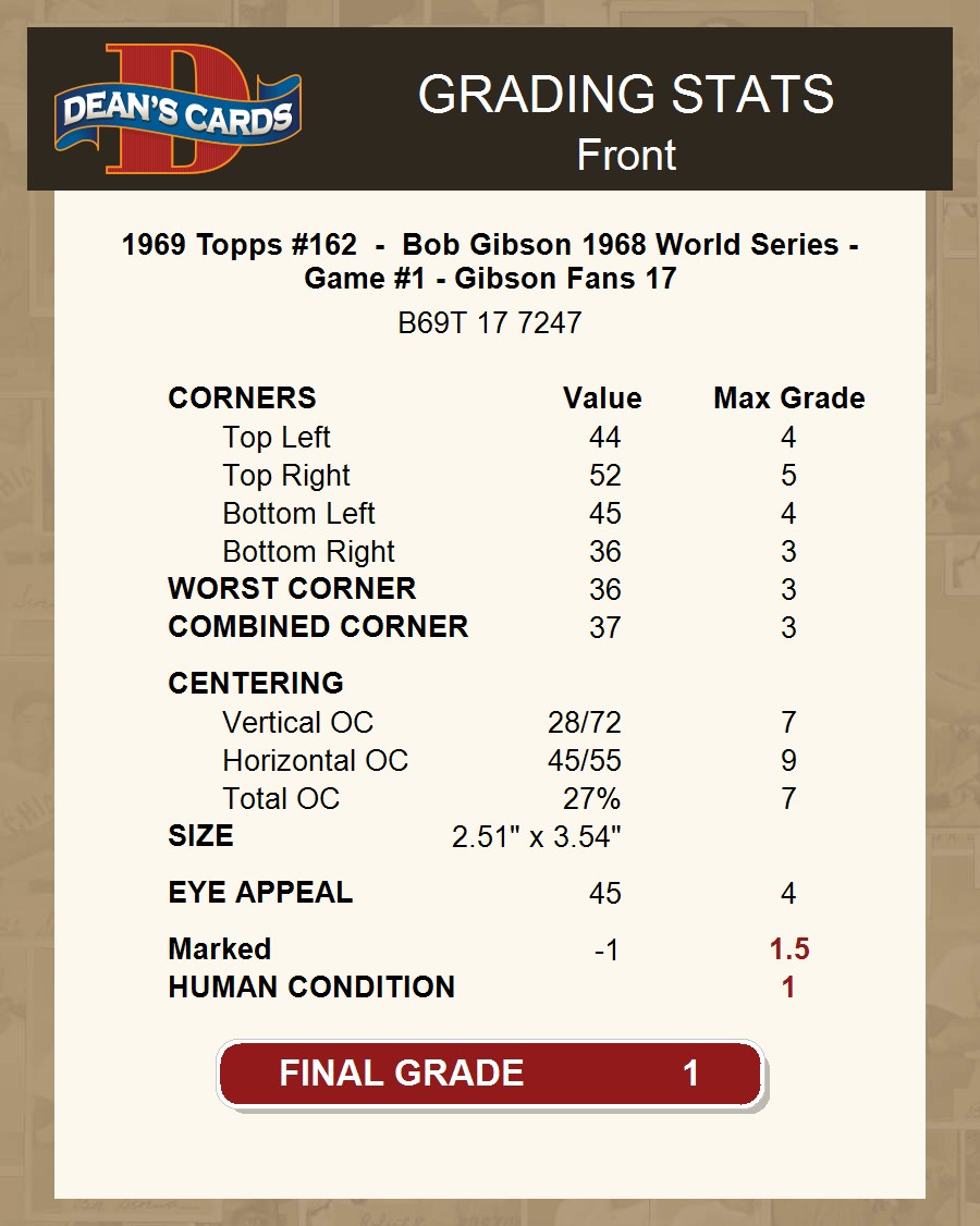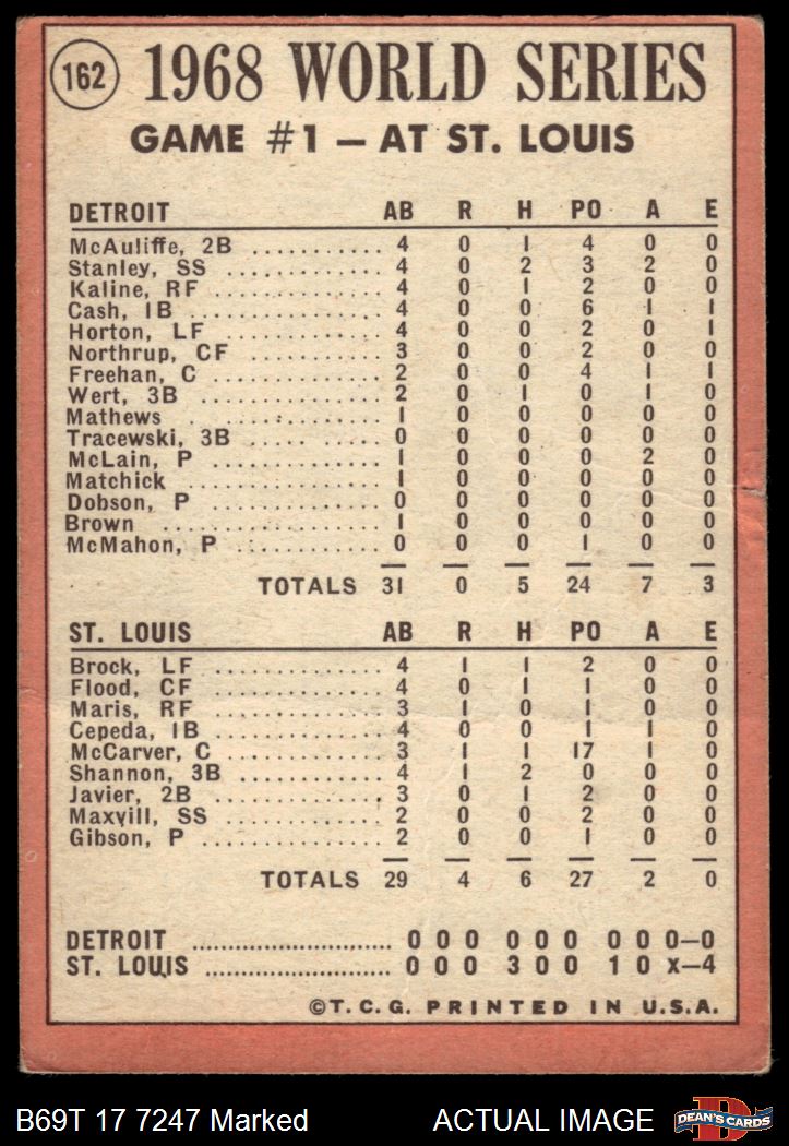 1969 Topps #162 - Bob Gibson 1968 World Series - Game #1 - Gibson Fans 17 1 - POOR