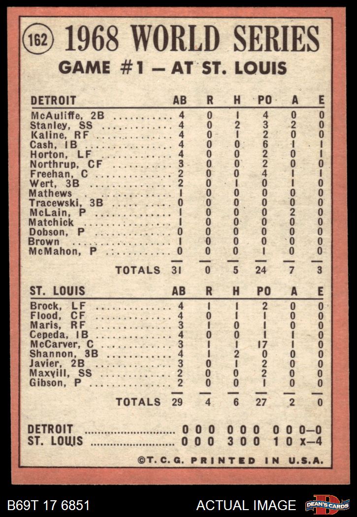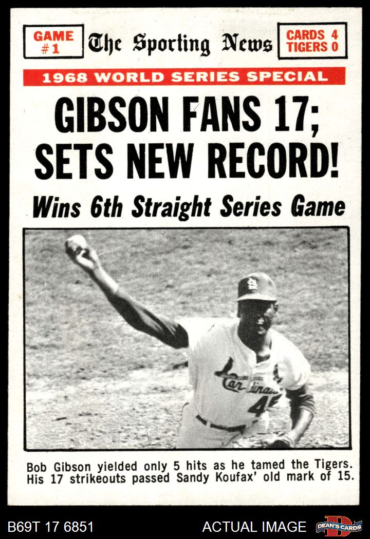 1969 Topps #162 - Bob Gibson 1968 World Series - Game #1 - Gibson Fans 17 7 - NM