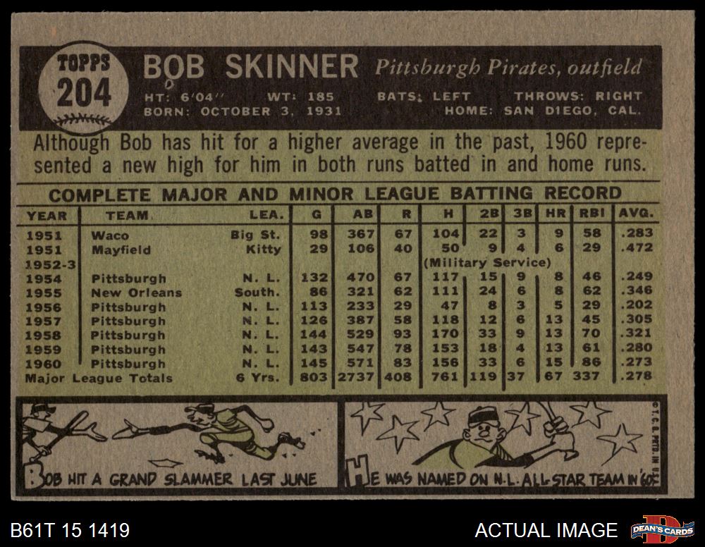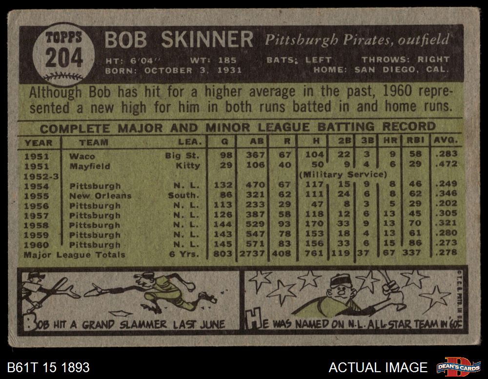 1961 Topps #204 Bob Skinner 2 - GOOD