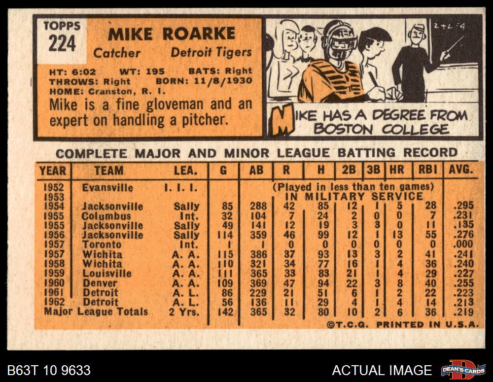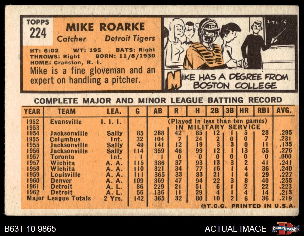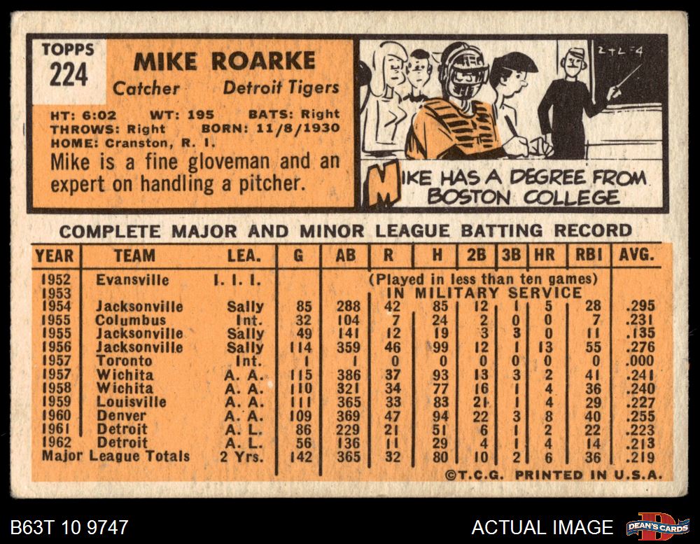 1963 Topps #224 Mike Roarke