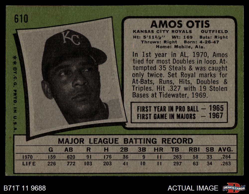 1971 Topps #610 Amos Otis 4 - VG/EX