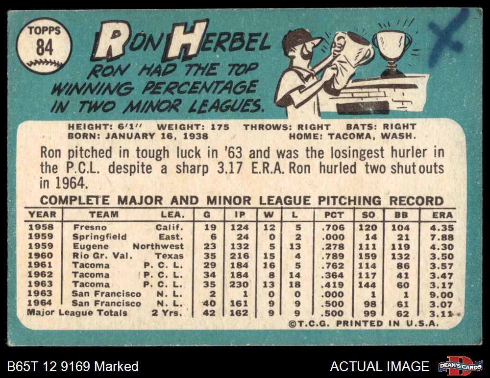 1965 Topps #84 Ron Herbel 1.5 - FAIR