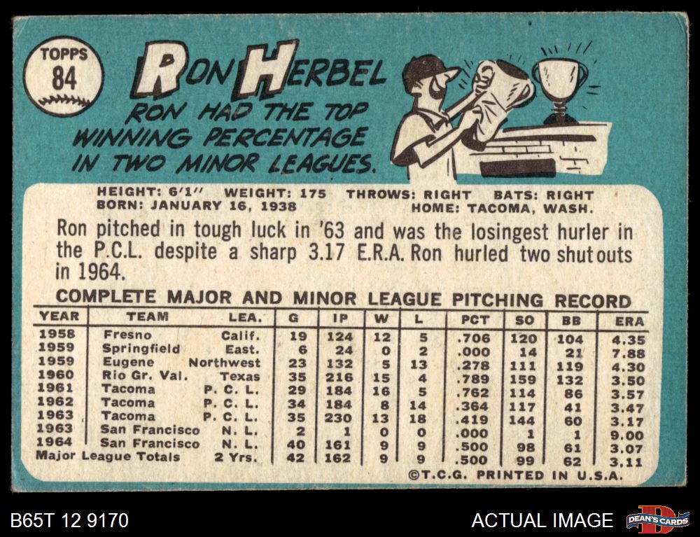 1965 Topps #84 Ron Herbel 2 - GOOD