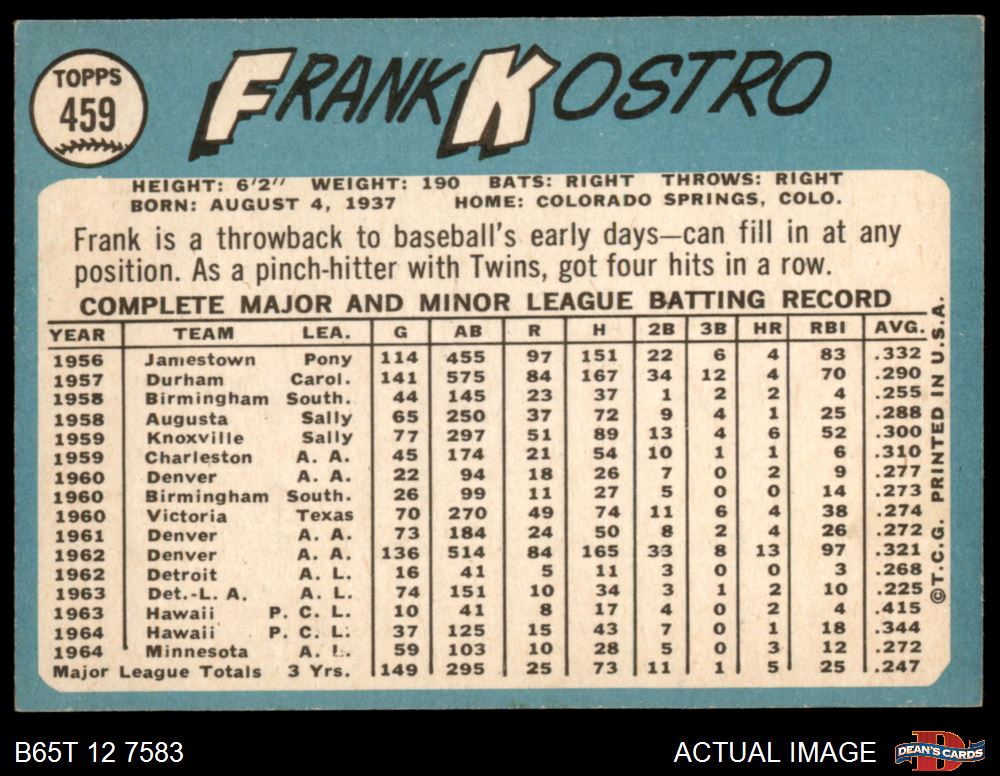 1965 Topps #459 Frank Kostro 2.5 - GD+