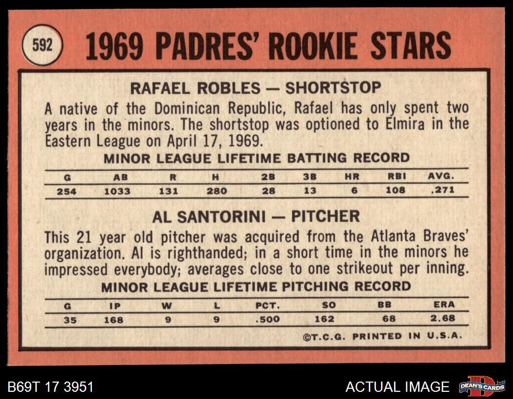 1969 Topps #592 - Al Santorini / Rafael Robles Padres Rookies 8 - NM/MT