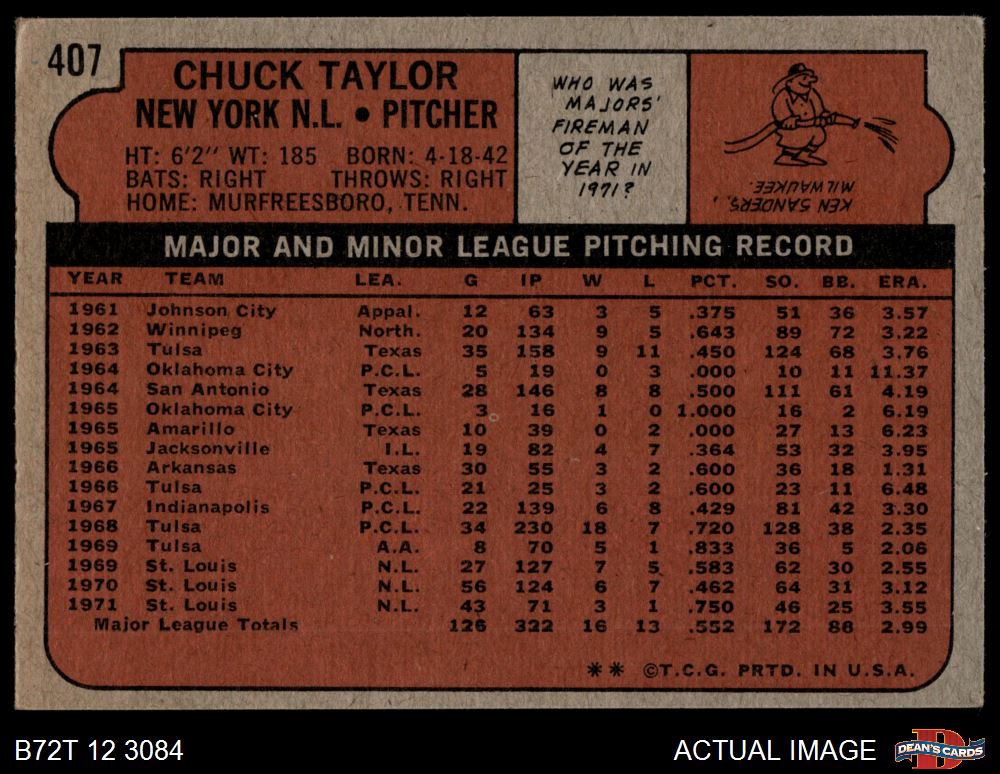 1972 Topps #407 Chuck Taylor