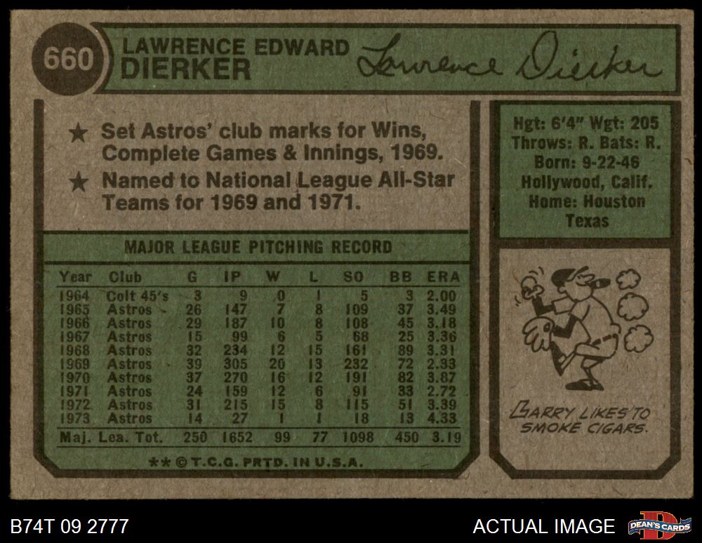 1974 Topps #660 Larry Dierker 3 - VG