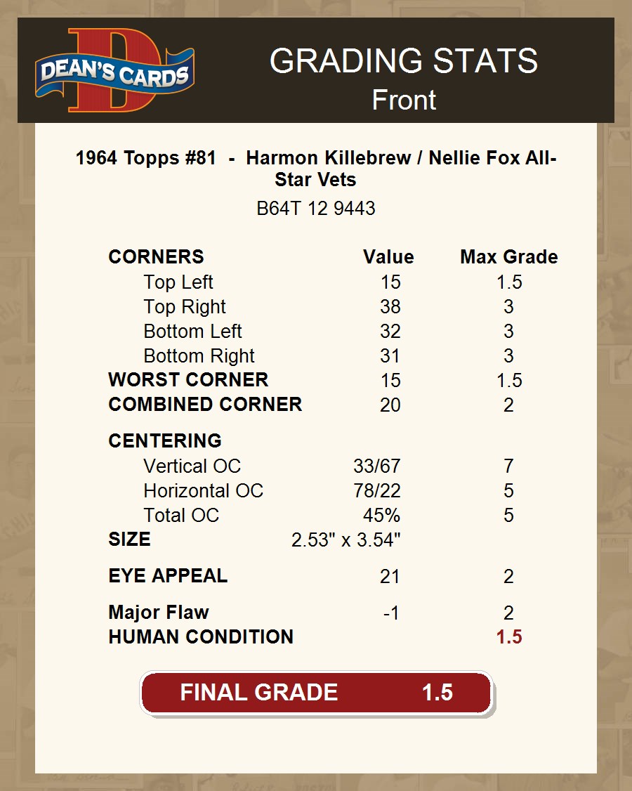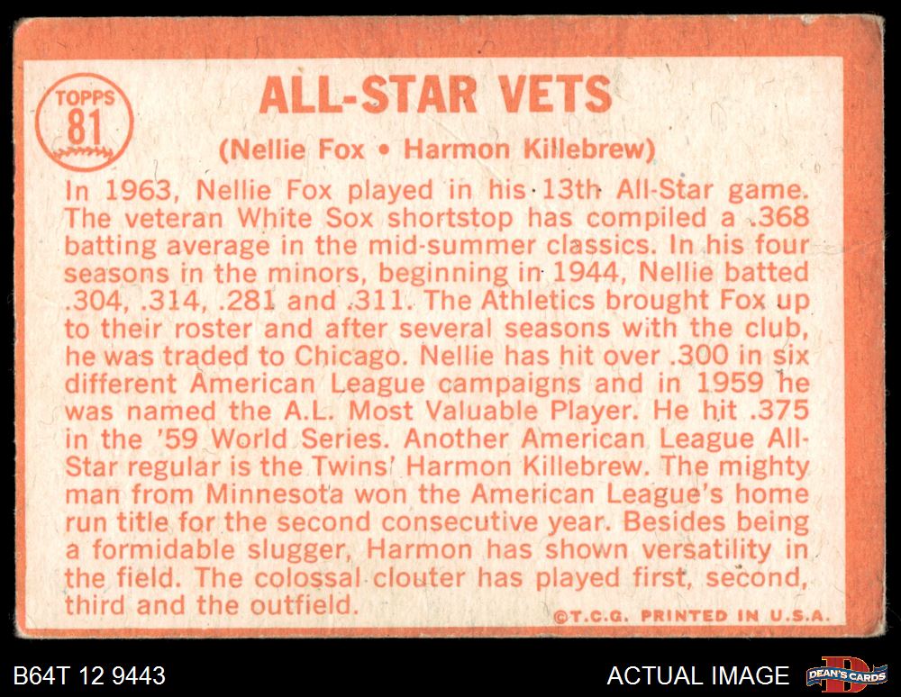 1964 Topps #81 - Harmon Killebrew / Nellie Fox All-Star Vets 1.5 - FAIR