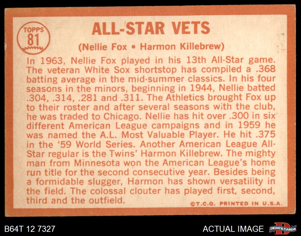 1964 Topps #81 - Harmon Killebrew / Nellie Fox All-Star Vets 3.5 - VG+