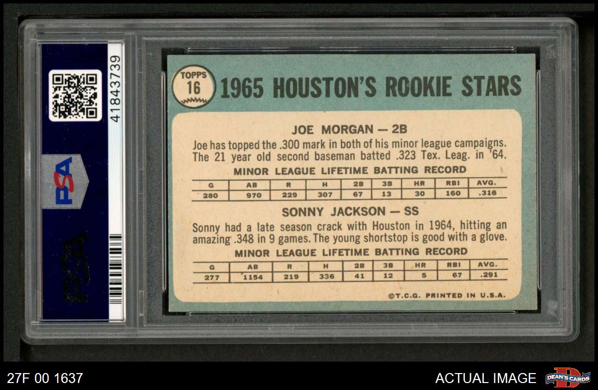 1965 Topps #16 - Joe Morgan / Sonny Jackson Houston Rookies PSA 5 - EX