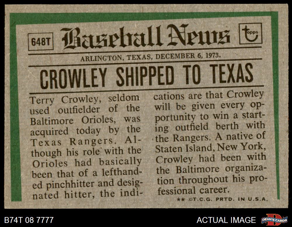 1974 Topps Traded #648 T - Terry Crowley Traded 6 - EX/MT