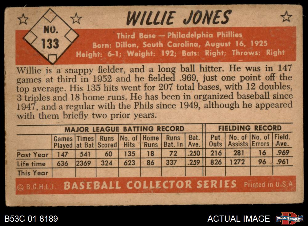 1953 Bowman #133 Willie Jones 2 - GOOD