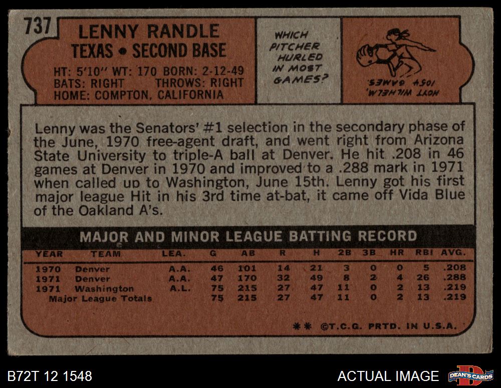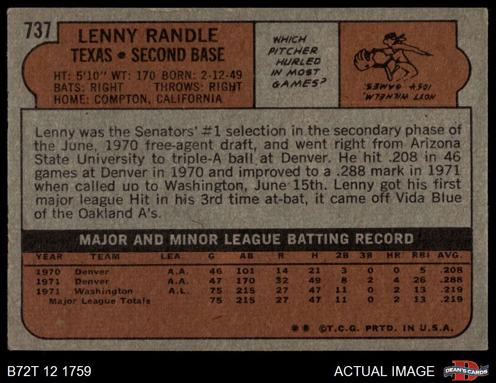1972 Topps #737 Len Randle