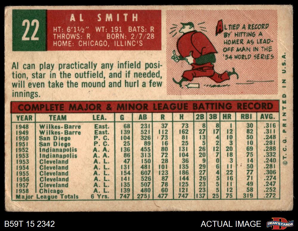 1959 Topps #22 Al Smith 1 - POOR