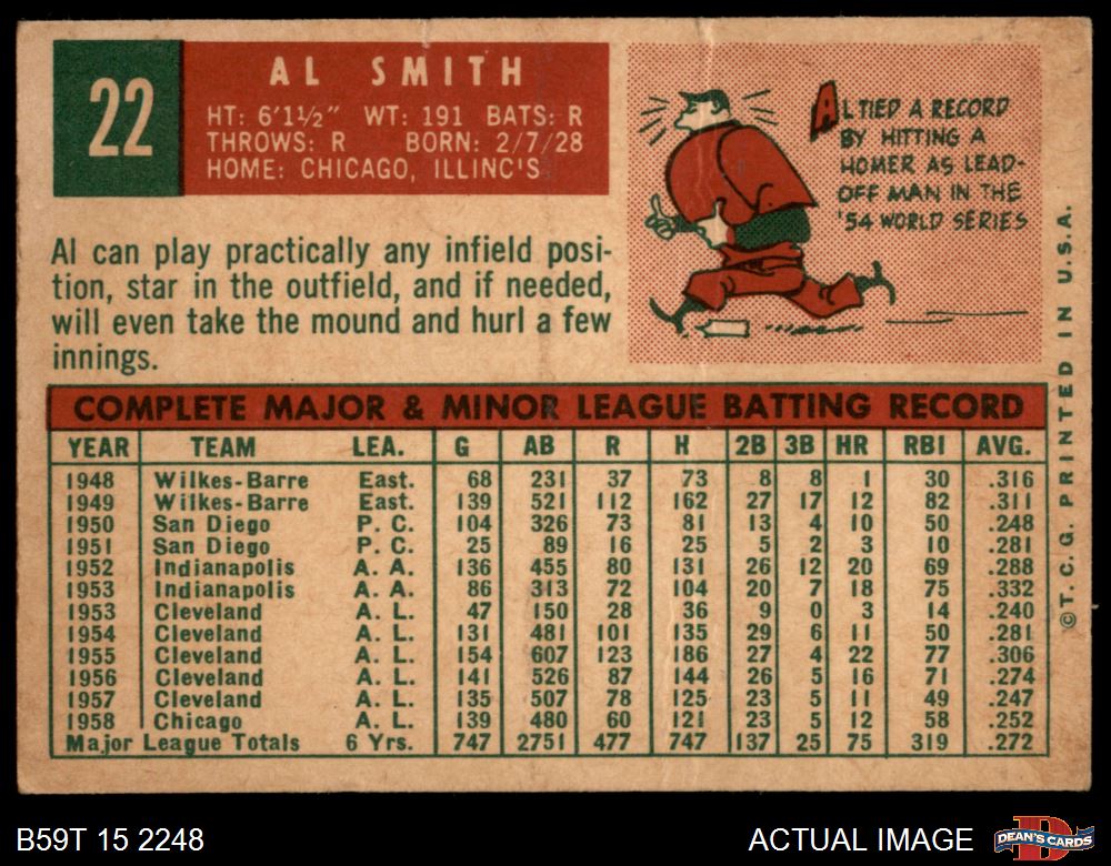1959 Topps #22 Al Smith 1.5 - FAIR