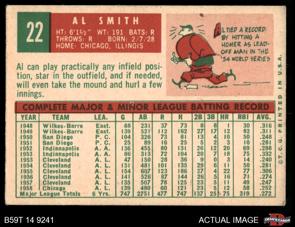 1959 Topps #22 Al Smith 3 - VG