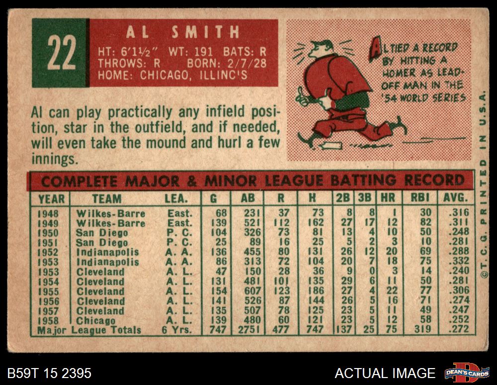 1959 Topps #22 Al Smith 4 - VG/EX