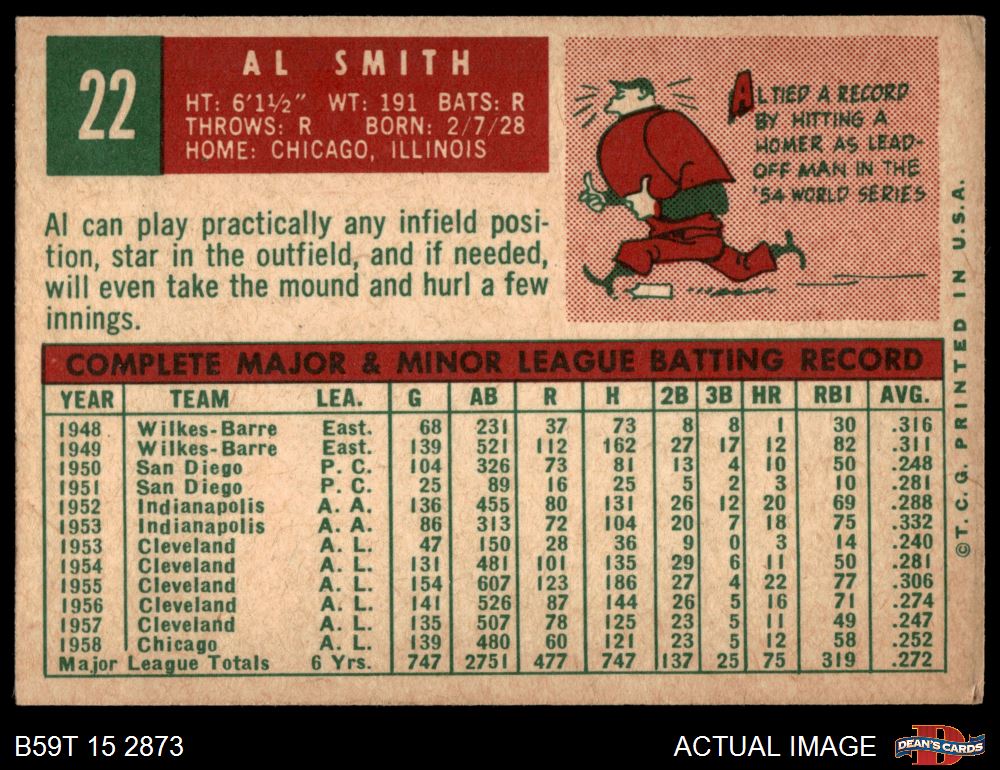 1959 Topps #22 Al Smith 4.5 - VG/EX+