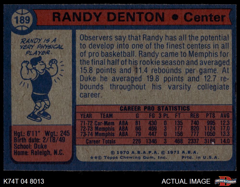 1974 Topps #189 Randy Denton 5.5 - EX+