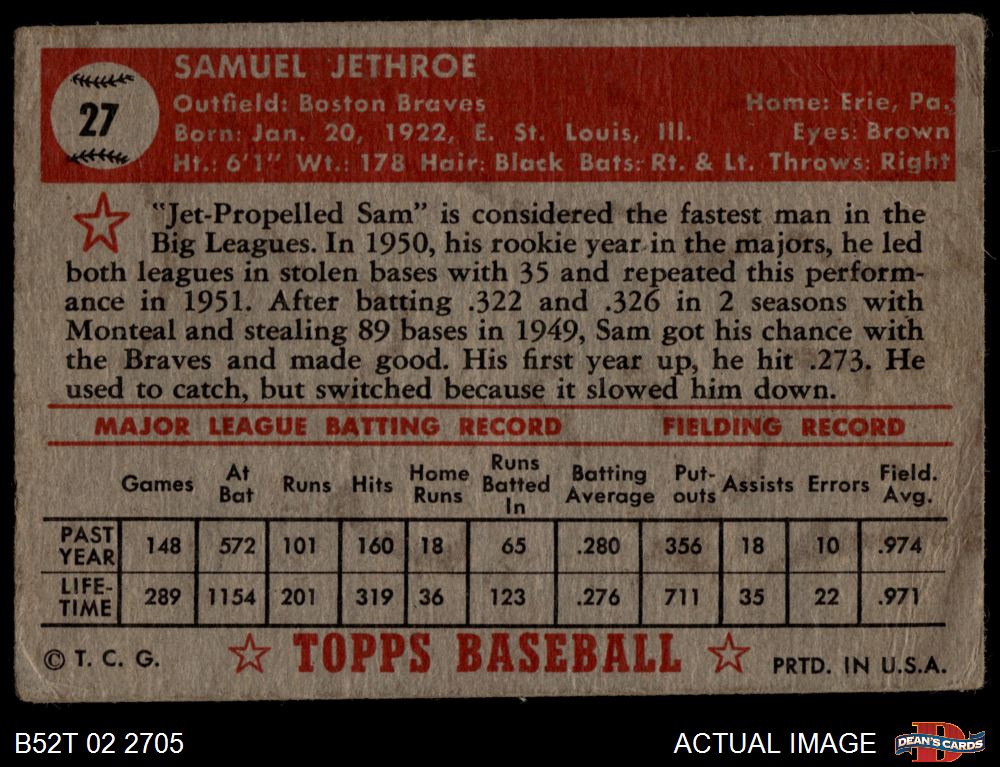 1952 Topps #27 Sam Jethroe 1 - POOR