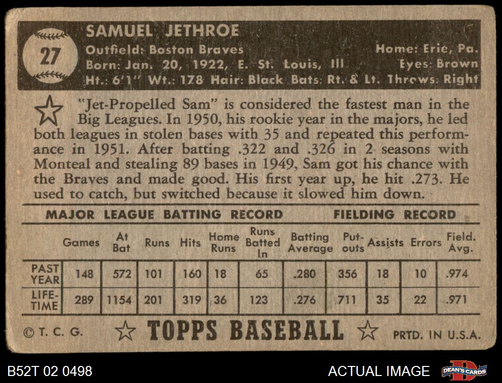 1952 Topps #27 Sam Jethroe