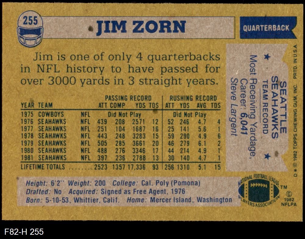 1982 Topps #255 Jim Zorn 8 - NM/MT