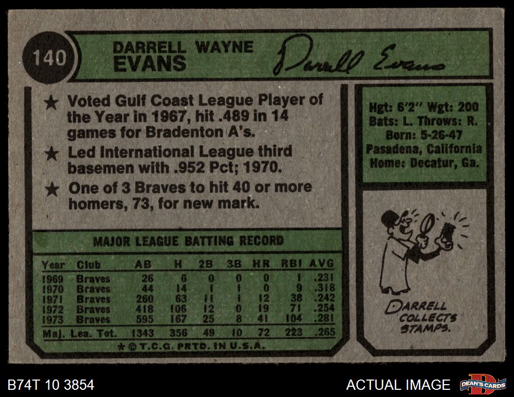 1974 Topps #140 Darrell Evans 4.5 - VG/EX+