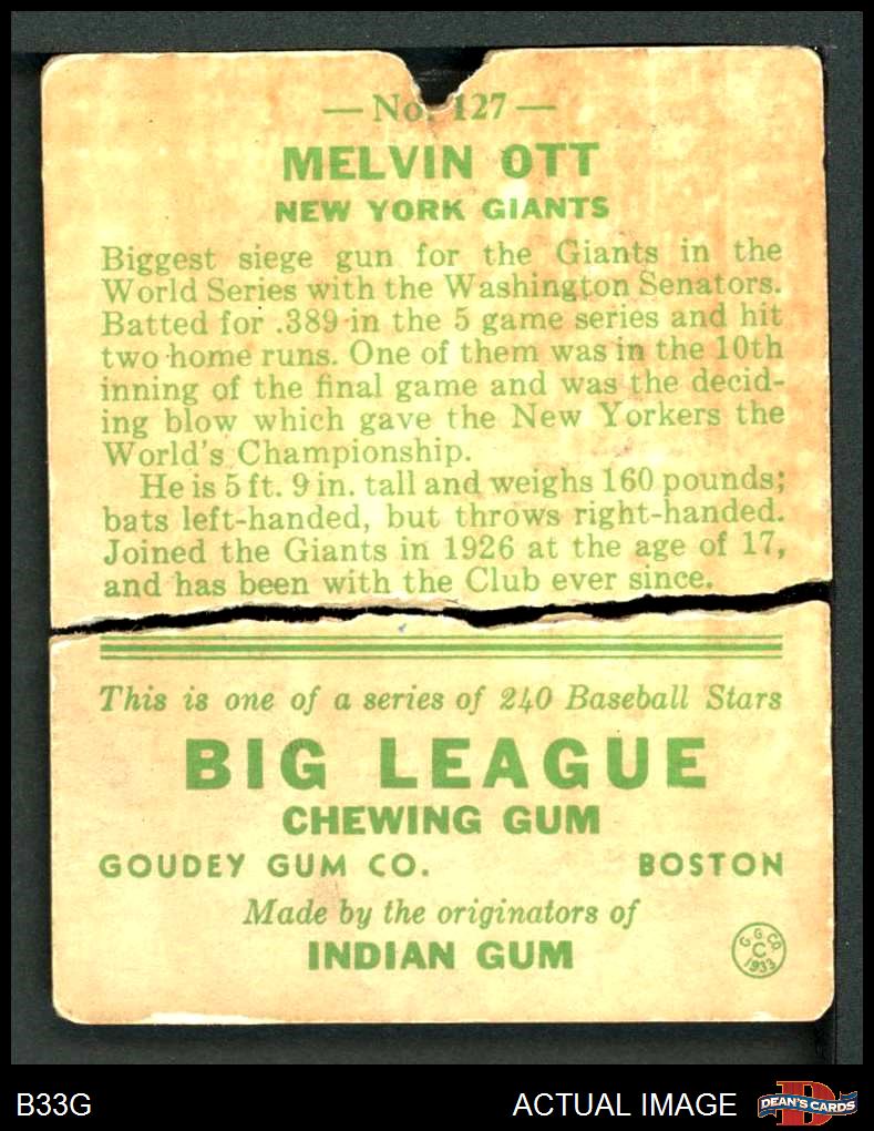 1933 Goudey #127 Mel Ott AUTHENTIC