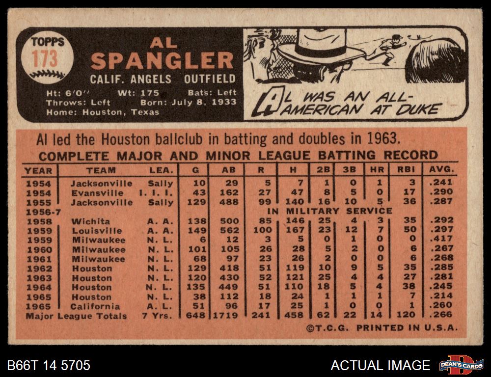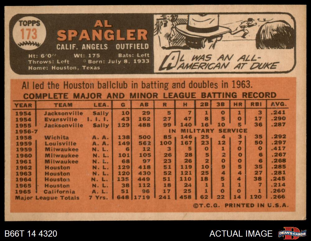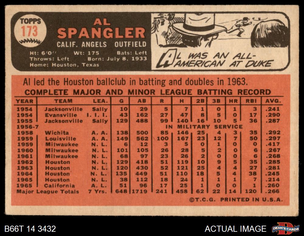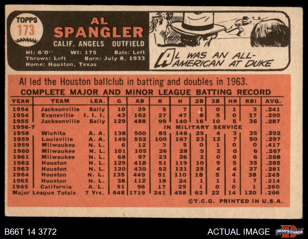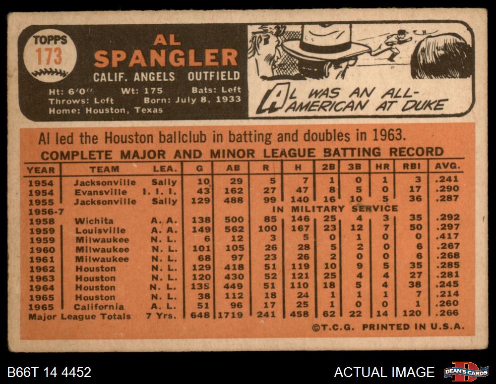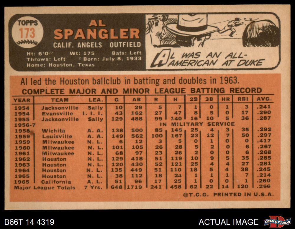 1966 Topps #173 Al Spangler