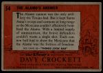 1956 Topps Davy Crockett Orange Back #54 The Alamo's Answer