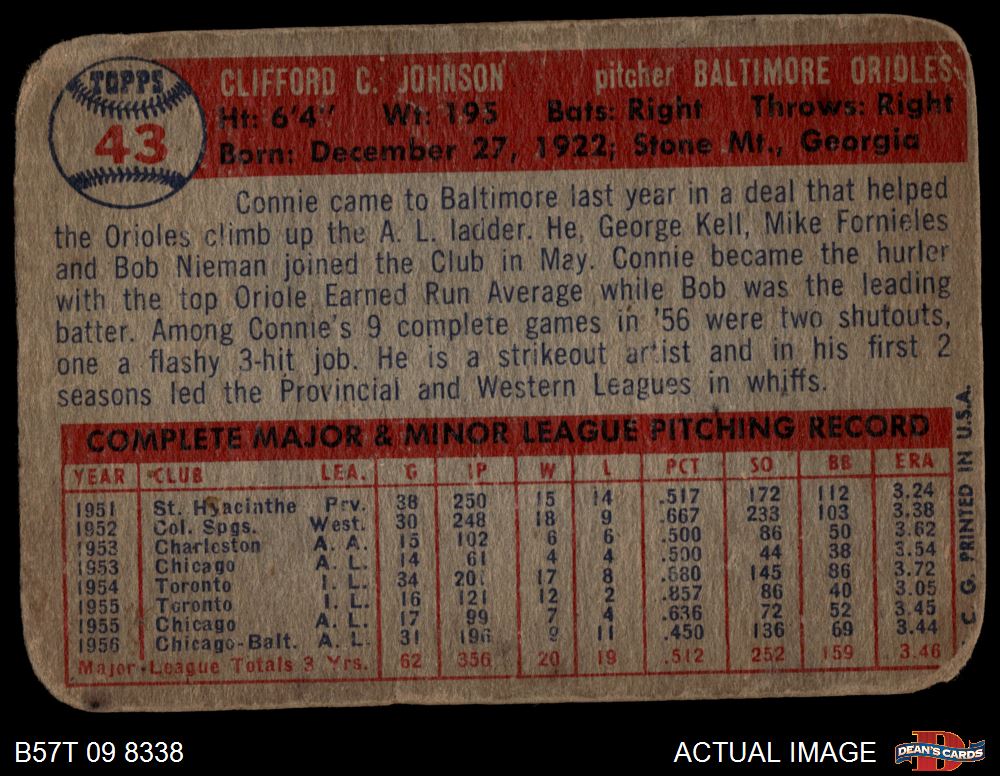 1957 Topps #43 Connie Johnson AUTHENTIC