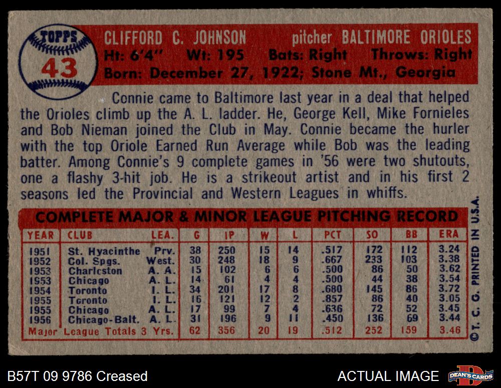 1957 Topps #43 Connie Johnson 3 - VG