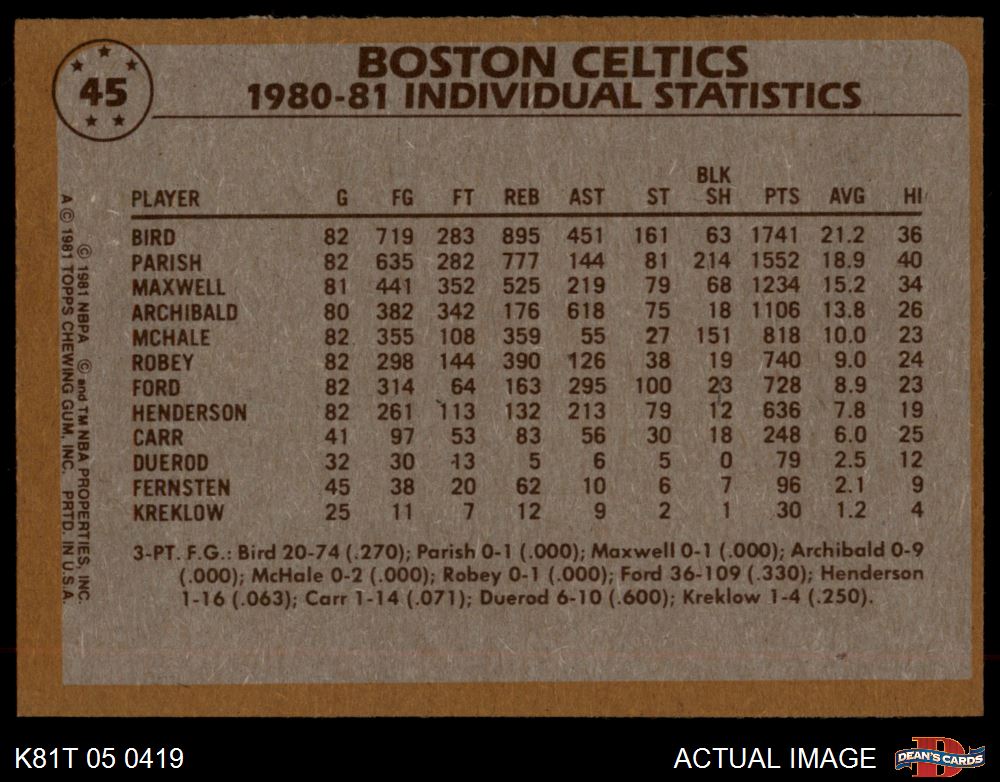 1981 Topps #45 - Larry Bird / Nate Archibald Celtics Leaders 5 - EX