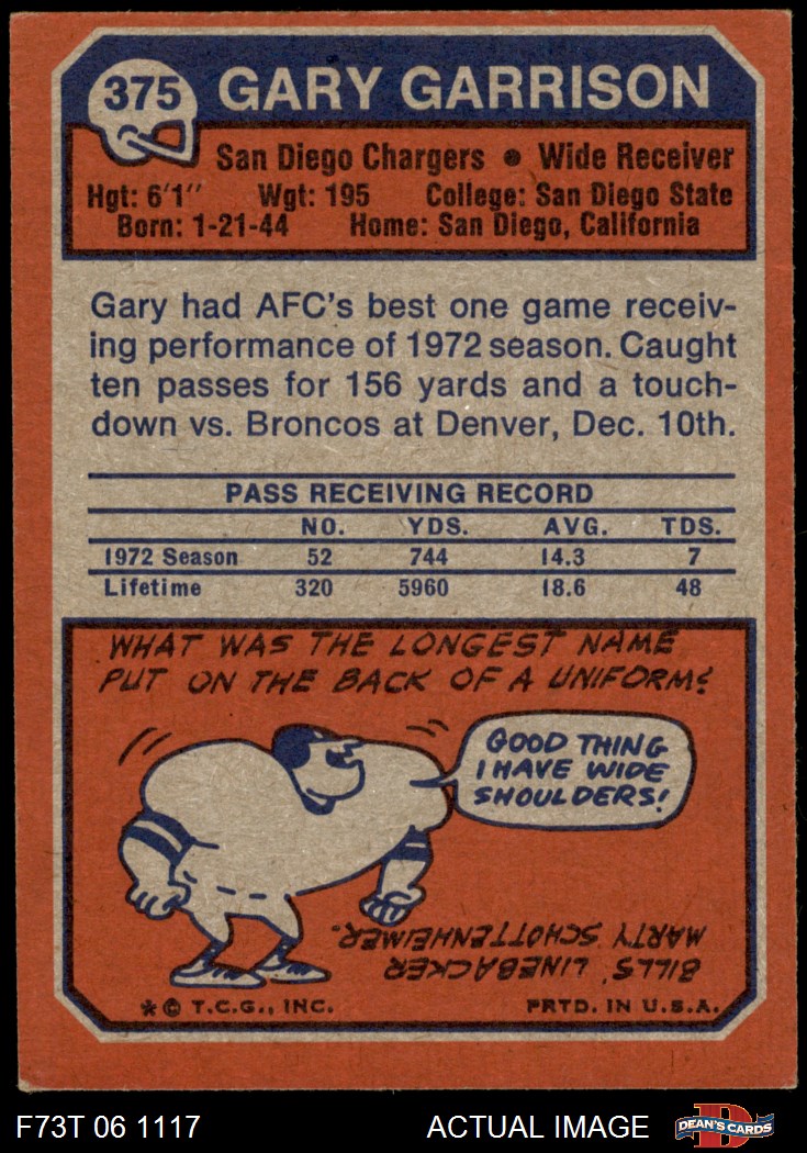 1973 Topps Football Cards (12,350 available)1973 Topps Chargers (660 available)