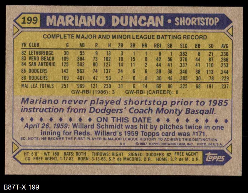 1987 Topps #199 Mariano Duncan