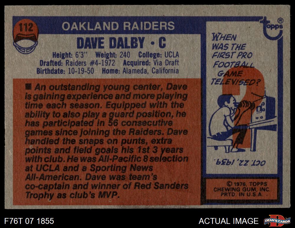 1976 Topps #112 Dave Dalby 4 - VG/EX