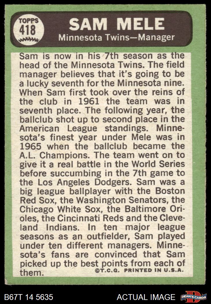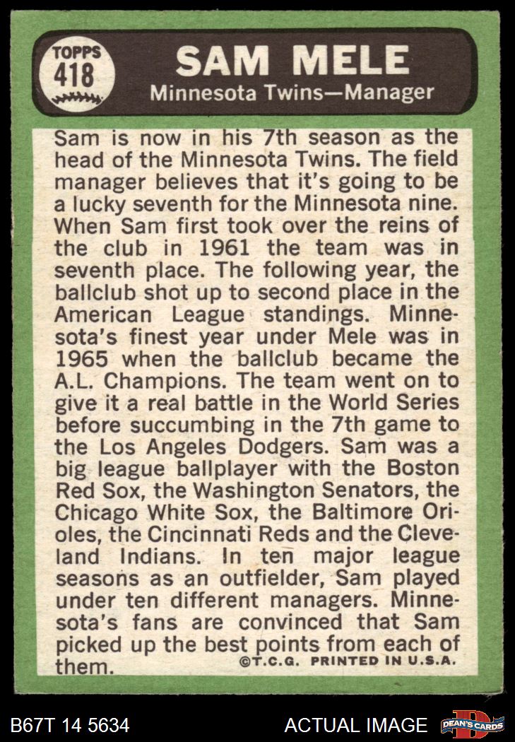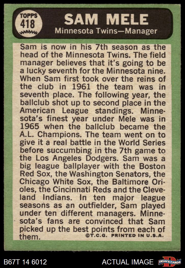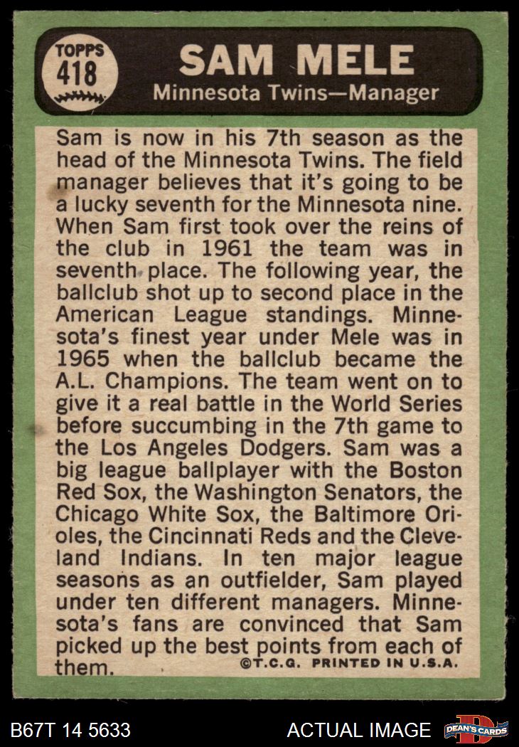 1967 Topps #418 Sam Mele