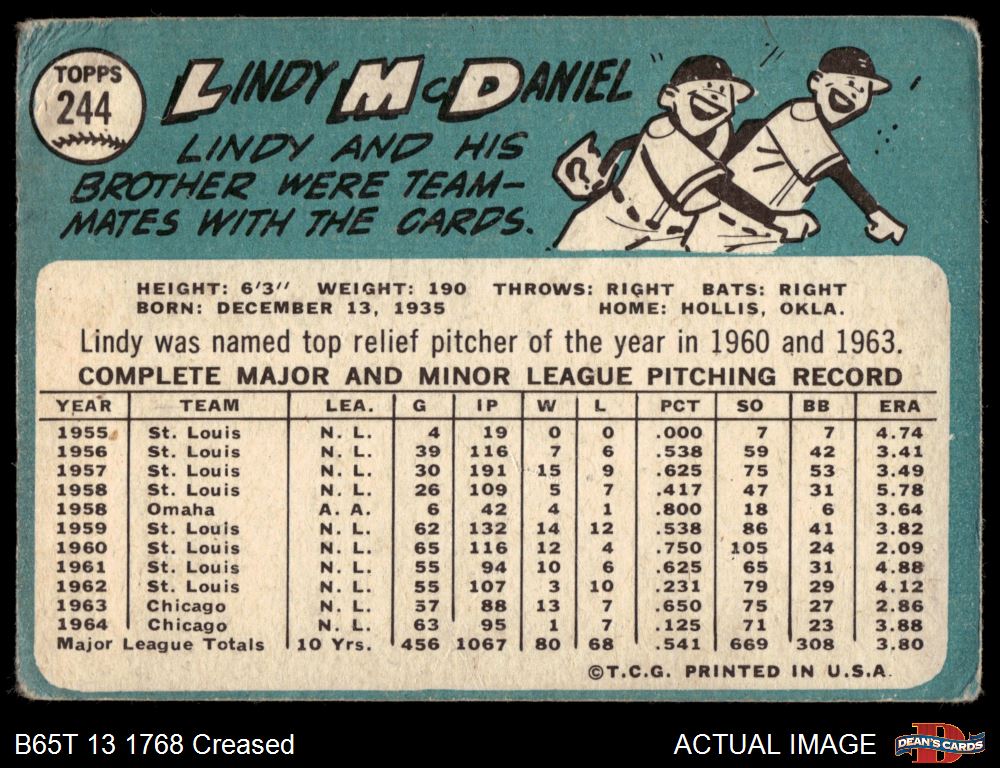 1965 Topps #244 Lindy McDaniel 1 - POOR
