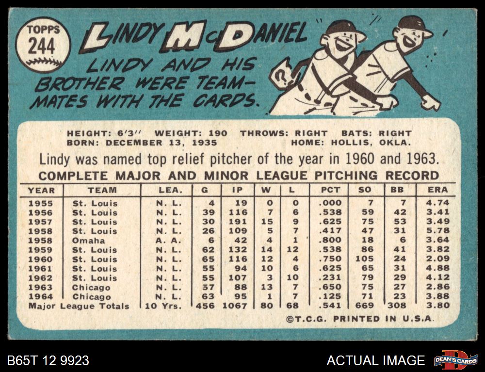 1965 Topps #244 Lindy McDaniel 3 - VG