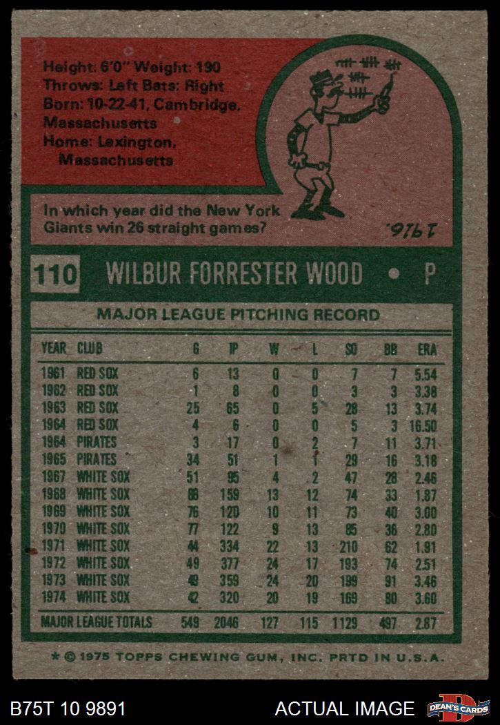 1975 Topps #110 Wilbur Wood 4 - VG/EX