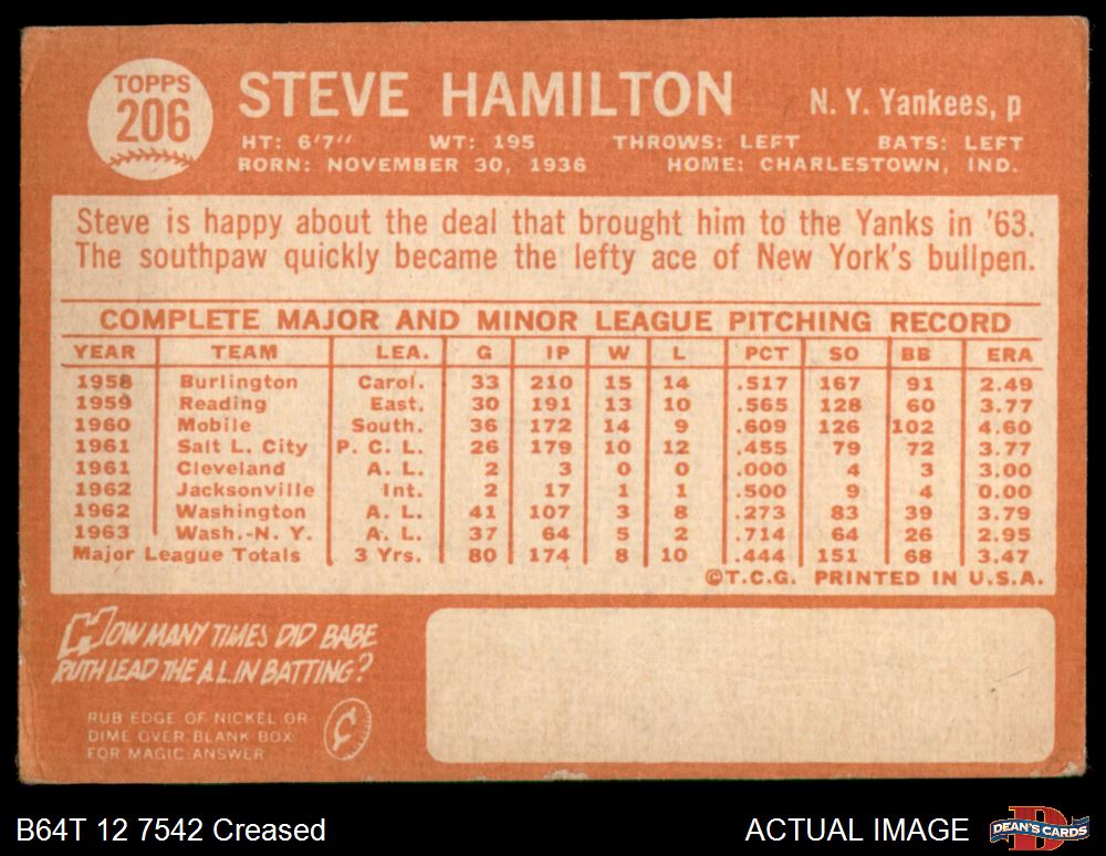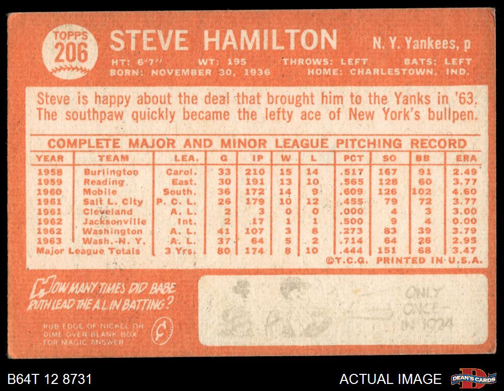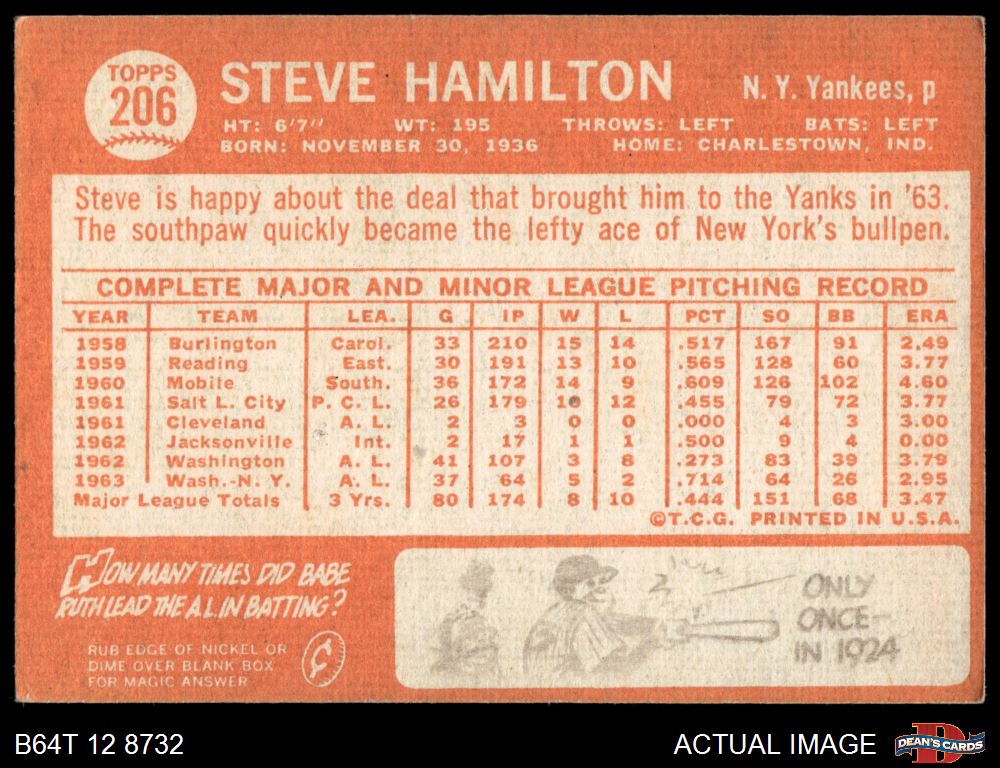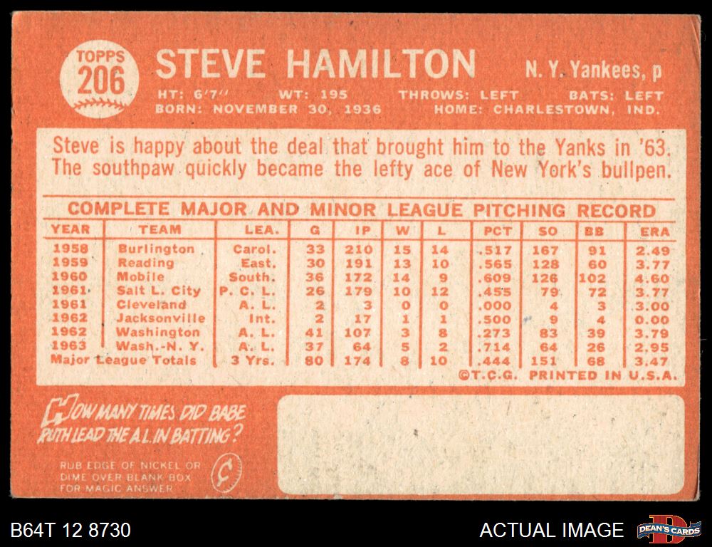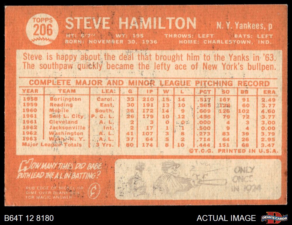 1964 Topps #206 Steve Hamilton