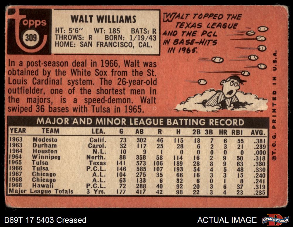 1969 Topps #309 Walt Williams