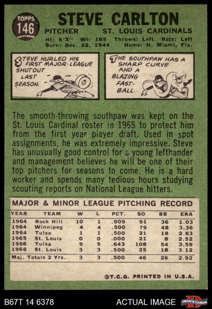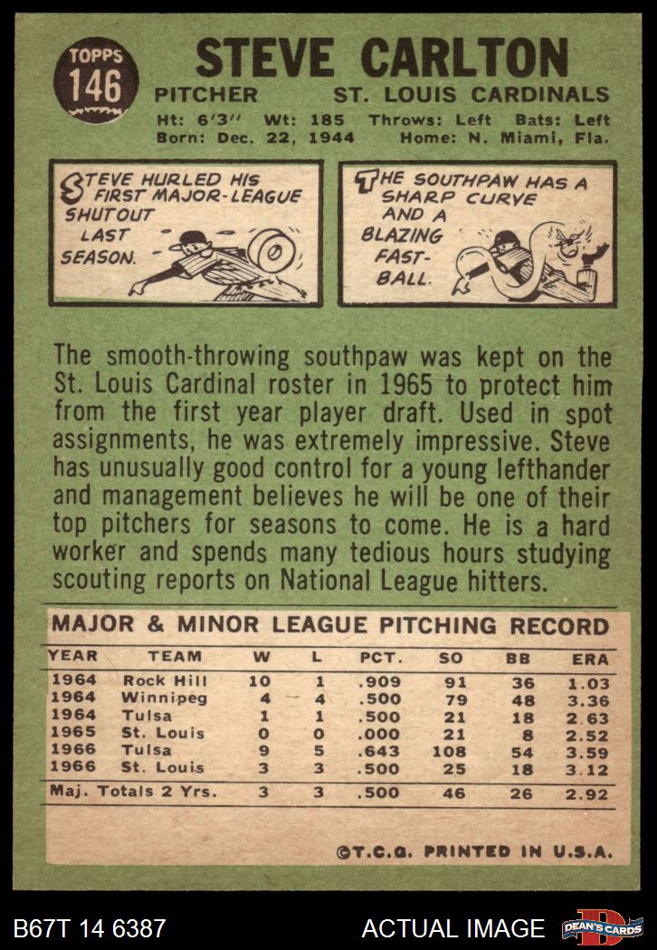 1967 Topps #146 Steve Carlton 6 - EX/MT