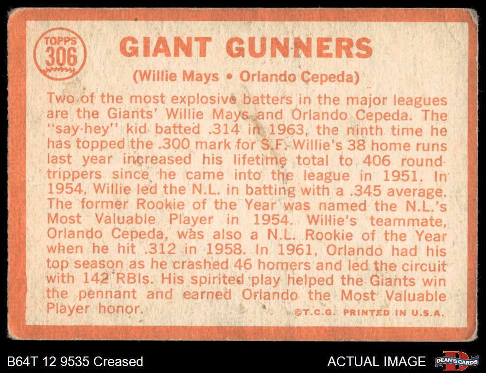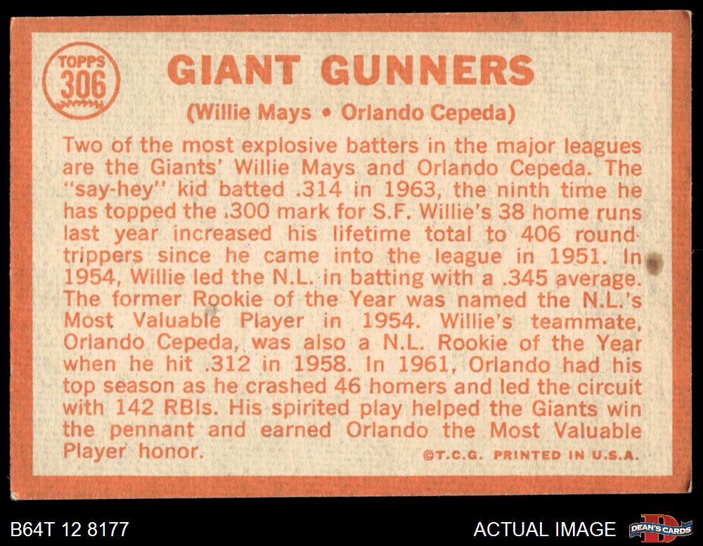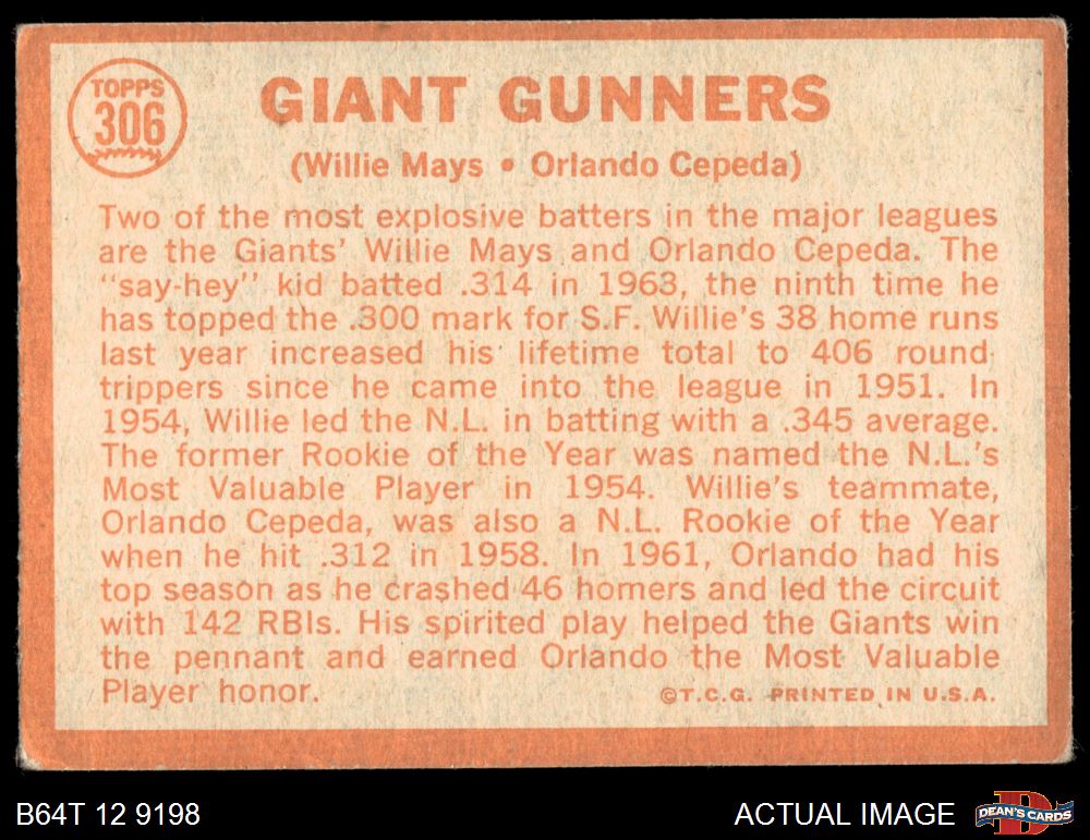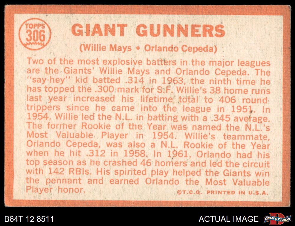 1964 Topps #306 Giants Gunners