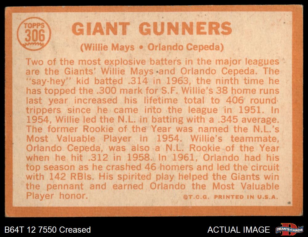 1964 Topps #306 - Willie Mays / Orlando Cepeda Giants Gunners 2 - GOOD