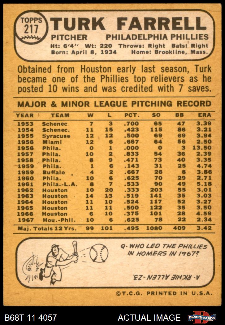 1968 Topps #217 Turk Farrell 7.5 - NM+